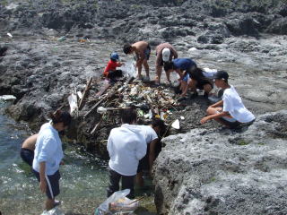 この島では授業などの時間を使って清掃活動などのボランティア活動を行っています。清掃活動の他には子ども会で空き缶回収などの活動も行っています。