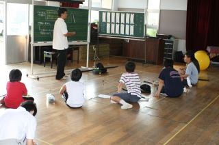7月19日に、学校の野外活動で釣りに行きました。まず最初に学校で島民の方に仕掛けの作り方を教えていただき、その後島内の城之前港に釣りに行きました。港にはイカの子どもがたくさんいました。とてもきれいでかわいらしく、珍しいものをみられました。釣りの方も、あまりたくさんは釣れませんでしたがみんなとても楽しんでいるようでした。