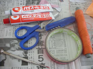 ・筆・ハサミ・金づち・たこ糸・布二枚