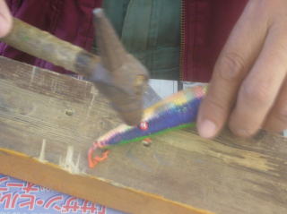 ○イカ釣りの時に使うもので、エサに似せたもの。島には餌木作りの職人さんがおり、総合的な学習の時間で教えていただきました。その様子をお伝えしたいと思います。