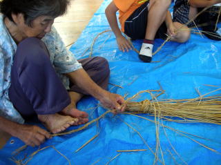 島の方に縄ないを教えていただきました。自分の背よりも長くできました。 |