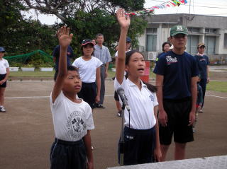島民とともに盛大な運動会が出来ました。一輪車の演技も大成功!! |