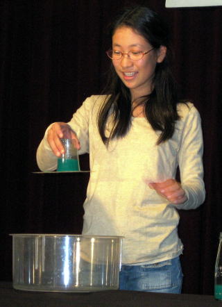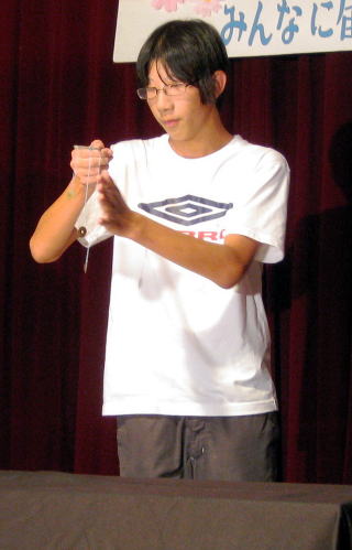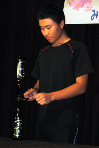 中学生は,「ミラクルマジックカルテット」の4人組として簡単な科学マジックを披露しました。練習や本番を通して,観客を引き付けて会場を盛り上げることの難しさと楽しさを学ぶことができました。