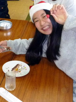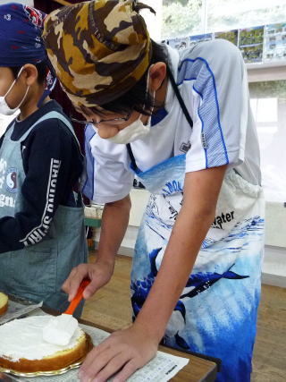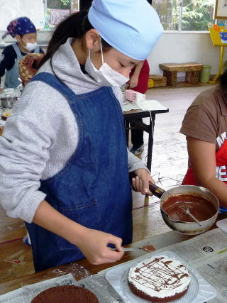 毎年,クリスマスが近づくと子ども会で年末お楽しみ会を開催します。保護者の方々と協力しながら自分たちでケーキを作り,島民の方々とおいしく食べます。