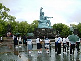 鹿児島を出発し、お昼頃に長崎に到着。平和祈念公園で折り鶴を奉納しました。原爆資料館を見学した後、班別の自主研修です。雨の中での移動は大変です。ようやく目的地に到着。夕食後、被爆者の方から直接お話を聞くことができました。