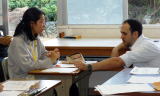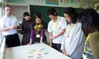中学生だけの授業では,はじめに英語かるたをしました。みんな真剣な表情でした。