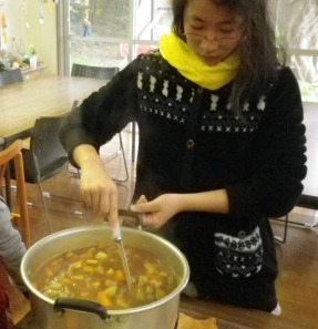 3月9日にお別れ遠足がありました。あいにくの悪天候で校内遠足でしたが,校内でレクリエーションを楽しんだり,カレーを作ったりしました。カレーは保護者や島民の方にも食べていただきました。