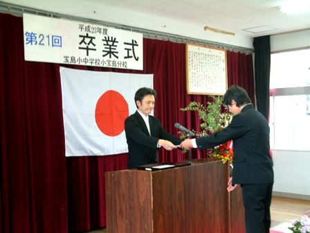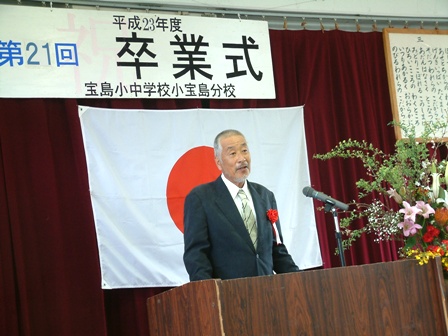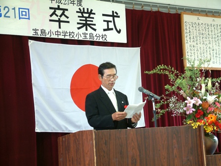 卒業生のみなさん,ご卒業おめでとうございます。新しい環境での活躍を楽しみにしています。島民の方々をはじめ,多数のご出席ありがとうございました。