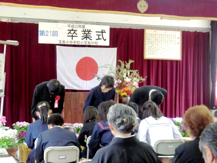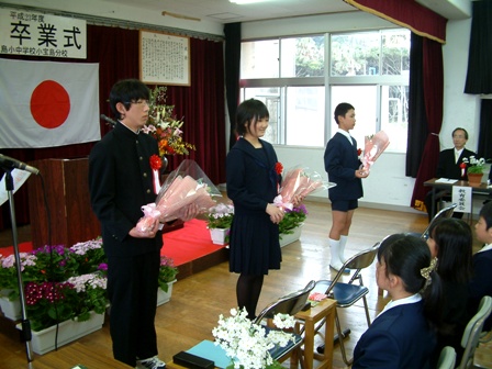 島民の方々や来賓も出席され,感動的で涙ありの卒業式となりました。