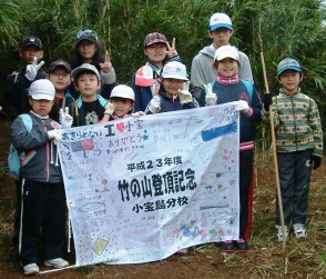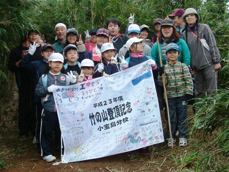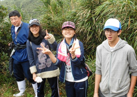 2月10日(金)に竹の山(たけんやま)登山がありました。小雨の降る中,始めは急な上り坂が続き生徒たちみんな苦しそうでしたが,頂上に着くとどこまでも広がっている海を眺めることができました。