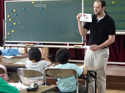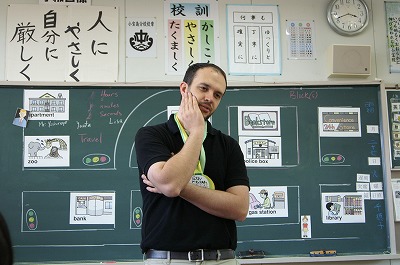 ALTのジャスティン・マーティンス先生が半年ぶりに来校。