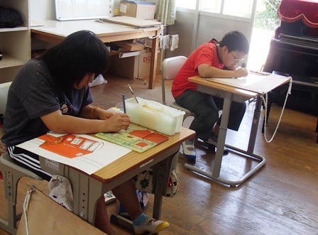 後半は教室に戻って色塗り。二人とも真剣です。