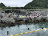 水泳学習は赤立神海水浴場で行います。自然のプールで泳ぐ水泳学習を子どもたちは毎年楽しみにしています。マリンブルーに輝く海で,魚たちといっしょに泳ぐことができます。