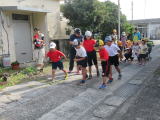 各学年で設定したコースを走ります。最後までねばり強く走り,記録更新を目指します。沿道からも島民の方々が温かい声援を送ってくださいます。 |