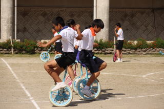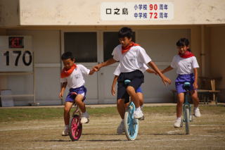 今年も運動会を開催することができました。今年は,一輪車に挑戦し,少しずつ乗ることができるようになっていくことに,子どもたちも達成感を味わっているようでした。応援団の演技も自分たちで考え,練習していました。自分たちのできることを一所懸命する姿に感動しました。
