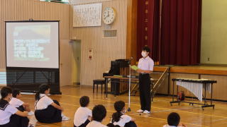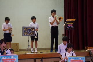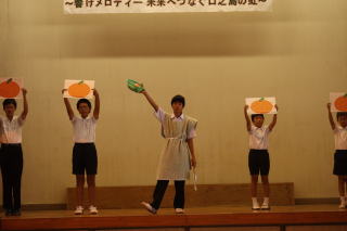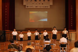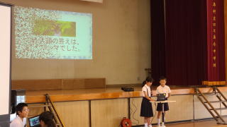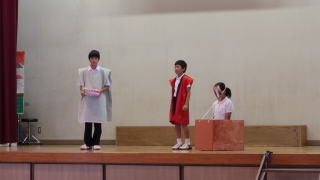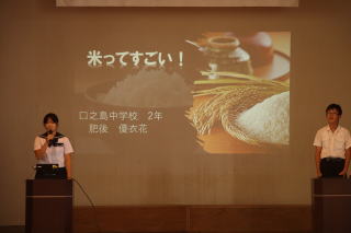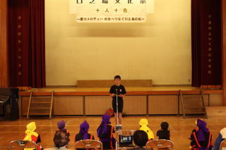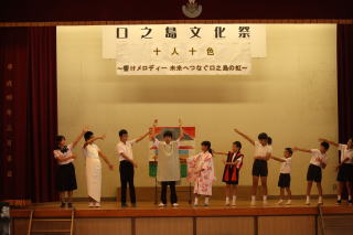 今年のスローガンは「十人十色~響けメロディー 未来へつなぐ口之島の虹~」はでした。今年は,新しく英語劇に挑戦しました。小学生でも外国語教育が始まり,少しずつ学習をしています。しかし,英語を覚えるのは大変そうでしたが,本番は見事大成功でした。他にも小学生の漢字クイズや中学生のディベートバトル,エイサー,金管バンド,くちっこ園の発表がありました。スローガンのように,個性を生かした発表がありました。伝統的な取り組みである金管バンドやエイサーを未来につなぐとともに,ここでの活動を未来へ生かしてほしいです。