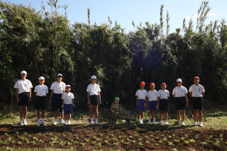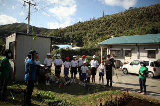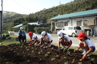 口之島を花いっぱいにしよう。その目標のもと,冬の地域花植えが行われました。キンセンカやペチュニア,クリサンセマムなど冬の花が植えられます。子どもたちが種から育てた苗です。元気に育って,色とりどりの花が咲きますように!