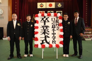 第74回口之島小学校卒業式,第66回口之島中学校卒業式が行われました。卒業生は,卒業証書授与や返礼の場面では立派な姿を見せてくれました。そして,在校生から卒業生への「励ましの言葉」,卒業生からの「お礼の言葉」ではそれぞれの思いが伝わるメッセージが贈られました。