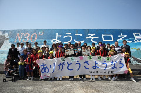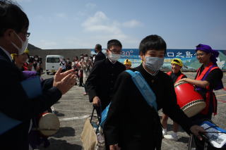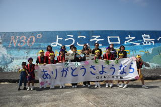 今年も別れの時期が来ました。昨日、卒業を迎えた中学3年生の2名が島を離れます。それぞれの場所で,自分らしく輝いてくれることを祈って、見送り式を行いました。卒業生は新たな場所に行くことに、不安もあると思いますが、在校生からのエイサーやエールなどによって励まされているようでした。