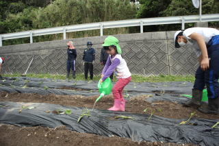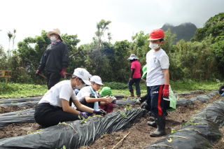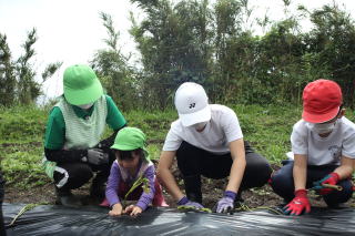 今年もさつまいも植えを行いました。事前にマルチを張った畑に、竹で穴を開けて、その中に苗を植えていきます。さつまいもは、この苗から、根を伸ばし、実を付けていきます。初めて、さつまいも植えをした子どもたちもたくさんいましたが、てきぱきと協力して植えることができました。10月に行われるさつまいも堀りが楽しみですね。早く終わって、空いた時間は田んぼの掃除もしました。さつまいもも、稲も元気に育ってほしいです。