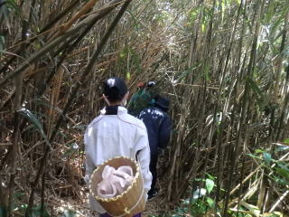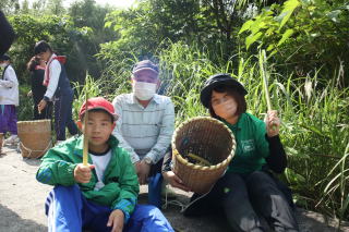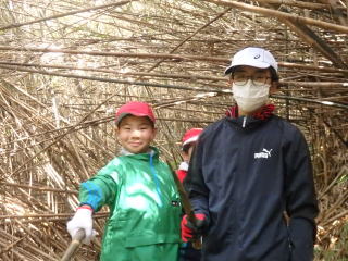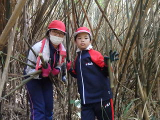 今年は、タケノコの成長が早かったです。今年も地域の方の山で、タケノコ採りをさせて頂きました。タケノコを採る場所までは、滑りやすく、細い道もあり、危険ですが、みんなで気を付けながら山の中を移動しました。タケノコ採りをする場所に着いてからは、竹を分け入って、タケノコを探していきます。地元の子どもたちは、小さなタケノコが美味しいと言って、頑張って探していました。また、初めてタケノコ採りをする子どもたちも多く、見つけたときは嬉しそうな顔をして採っていました。山から戻ってから、皮をむきました。最初は上手にむけない子どももドンドンうまくむけるようになってきます。持って帰るのが楽しみそうでした。