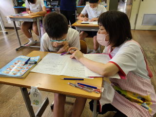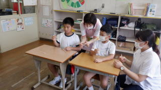 次に、3校時に小2・3年生は「食事のマナー」について学び、箸の持ち方やお椀の持ち方を教えて頂きました。
