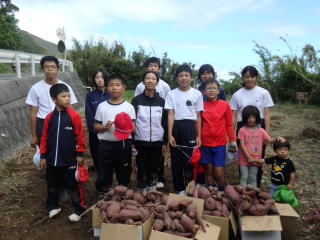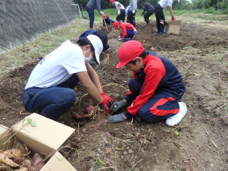 4月末に植えたさつまいもが大きく育ちました。今年は雨などの影響で、苗を植えてすぐに枯れてしまった品種もありました。しかし、地域の方々の支援でたくさん収穫することができました。大きいさつまいもが取れたり、きれいに根がつながって取れたりすると子どもたちもうれしいそうでした。収穫した芋は、家に持って帰ります。たくさん取れたので、たくさん食べてくださいね。 御協力頂いた地域の方々、ありがとうございました。