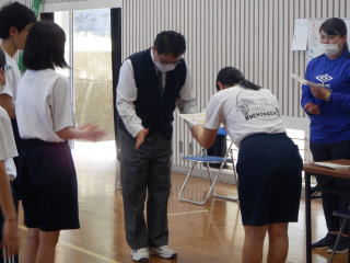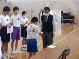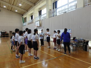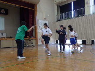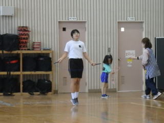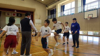 3月PTAと合わせて、授業参観として縄跳び大会が行われました。今年も2チームに分かれて勝負をしました。個人種目の持久跳び、チーム種目の八の字跳びと大縄跳びの3つの種目で競技します。持久跳びでは3年生女子2名が7分を超える時間跳び続け、それに中学1年生の男子が負けじと頑張りました。チーム種目に入ると先生たちが縄をまわします。今回は、練習時間が少なかったため、合わせることがあまりできませんでした。しかし、練習するにつれて、縄の長さや跳ぶ場所を工夫し、子どもたちもタイミングを掴むことでどんどん跳ぶ回数が増えてきました。本番は、記録更新まではなりませんでしたが、どちらのチームを力を出し切ることができました。チームのリーダーを務めた低学年の児童は嬉しそうに賞状を受け取っていました。