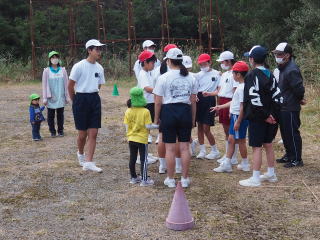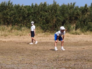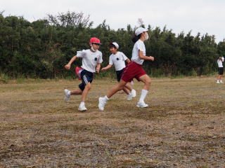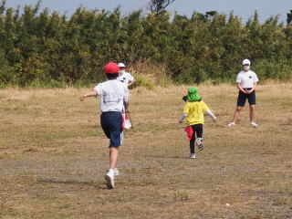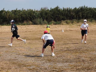 2月予定していた遠足が延期され、中学3年生との最後の思い出作りとしてお別れ遠足が行われました。児童生徒会の執行部を中心に、遠足で行うレクリエーションを考え、実施しました。今年のレクリエーションは、ケイドロと野球でした。ケイドロは初めは子どもたちだけで行い、見事捕まえることができました。そして、先生たちも泥棒と警察に分かれて参加しました。警察の連携した動きで、あっという間に捕まえることができました。午後からは野球です。野球は、教師VS児童生徒です。なかなか野球をしたことがない児童もいて、ボールを投げることも難しかったですが、白熱した戦いになりました。