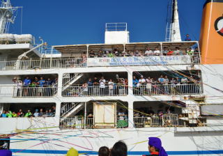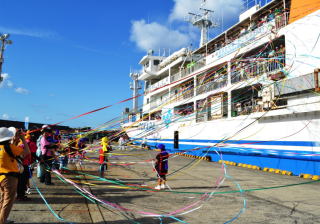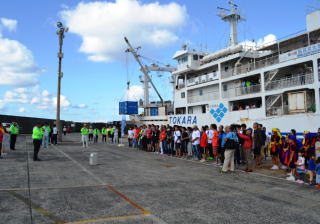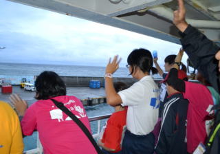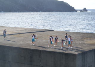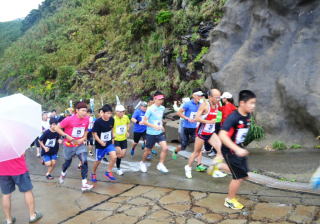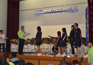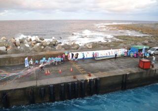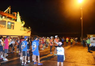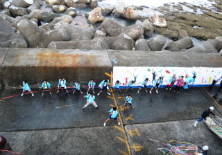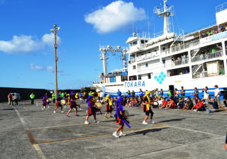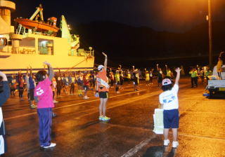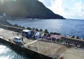 トカラ列島の7つの島をめぐる,トカラマラソンが行われました。口之島小中学校からは,多くの児童生徒と保護者の方,職員が参加をしました。今回は実施時期の関係で,例年より少しコースが短縮されましたものの,起伏の激しいコースに苦戦をしていました。それでも,全員見事に完走することができました。翌日は,各島で小中学生による伝統芸能が披露され,参加者を見送りました。