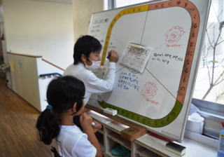 | みんなが健康でケガのない学校にしていくために,いろいろな活動をしています。手洗い場・トイレの点検,献立表の記入,台ふき,お盆拭きの片付け,ポスター作りなど頑張っています。また,定期的に発表会を行い,目や歯の大切さ,食生活などについて,発表します。 | ||