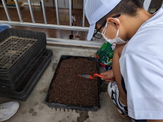 | 環境委員会は、リサイクル活動と緑化活動の2つを主に行っています。リサイクル活動の一環として、段ボールの片付けやゴミの回収などをしています。緑化活動では、地域花植えの運営や苗植え替えの準備など様々な活動を行います。 | ||