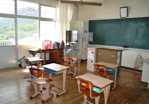 小学校舎の2階に,小学3,4年生の教室があります。平成27年度は,3年生が2人,4年生3人の合計5人です。学校の中でも一番高い場所にあり,ここからの眺めは最高です。