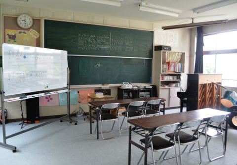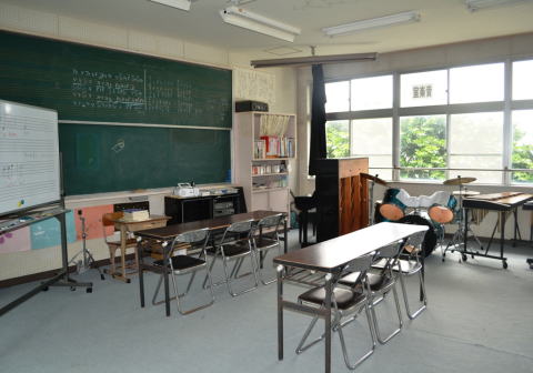 小学校舎2階の一番奥に,音楽室があります。音楽の授業はここで行われます。また,毎週水曜日の放課後は,ここで金管バンドの練習に取り組んでいます。