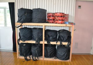 中学校舎の横に,体育館があります。体育館は「へき地集会室」と呼ばれていて,島内の様々な活動に利用されています。口之島小・中学校でも,学校行事や体育の授業,部活動などいろいろな場面で使っています。また,毎週木曜日の放課後は,児童生徒全員でエイサーの練習をしています。