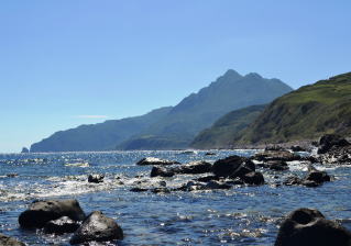 絶好の釣りポイントとして人気のスポットです。浅瀬では夜釣りも楽しめます。遊歩道を渡って海岸に降りると,島の中央にそびえる前岳の美しい姿が眺められます。