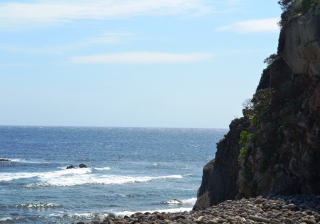 島の北東部に3㎞ほどに渡って連なる海岸です。砂浜ではなく,ゴロタ石の海岸が広がります。集落から海岸まで降りることができ,雄大な太平洋を眺められます。東側に開けているため,海から昇る朝日を見ることができ,晴れた日には屋久島も見られます。