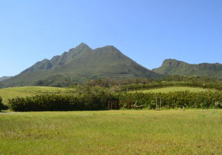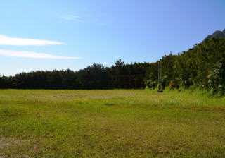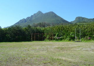 ヘリポートの先には,健康広場という運動場があります。島内のレクリエーションや遠足などに利用されています。四季折々の花が咲き,前岳を望むことができる,自然豊かな場所です。
