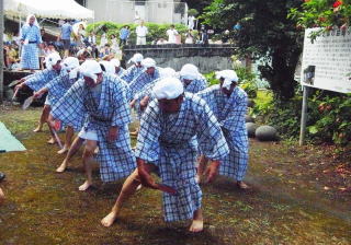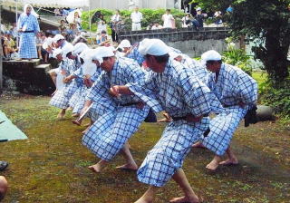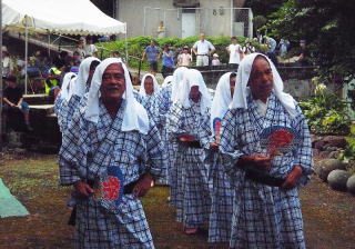 旧暦の盆の日に行われる,伝統芸能です。島の男性が踊り手となり,踊りの中に狂言が組み込まれているのが特徴です。録音技術のない数百年前から,口頭で継承されてきました。 午前はトンチ(集落の集会所),午後はテラ(墓地)で先祖の供養として踊られます。小学生以下の子どもたちが踊る小踊り,先踊り,天下泰平,サンサ節,ドンドン節,狂言で構成されています。 |