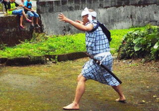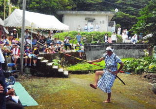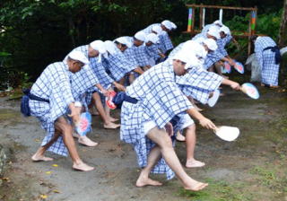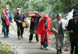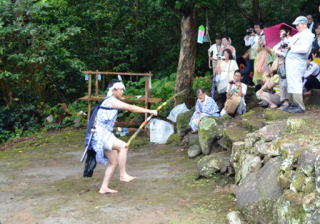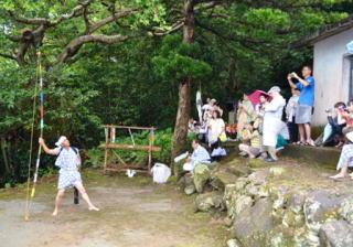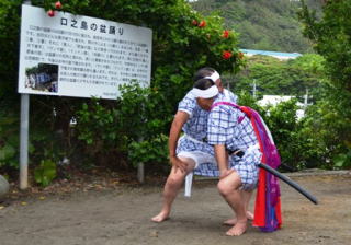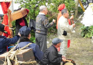 口之島でも有名な祭りの一つです。旧暦11月に行い,神様に今年取れた新しいお米でつくるお酒やサトイモをそなえます。各お宮をまわって,遠くの家族の健康安全や豊作を祈ります。 |