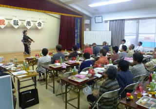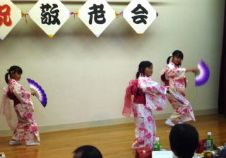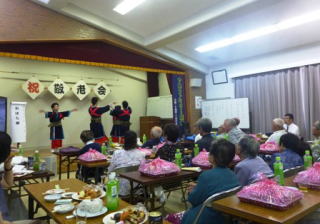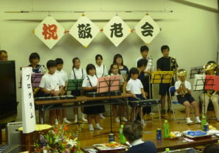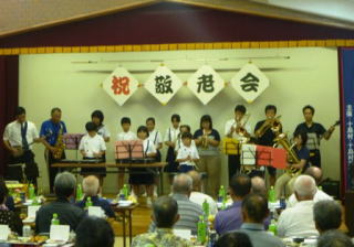 毎年9月に,お年寄りの方々に集まっていただいて敬老会を開いています。小中学生も参加して,合唱や金管バンド演奏などを披露し,大変喜ばれています。 |