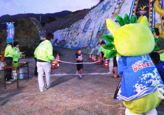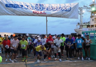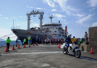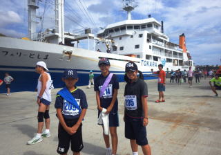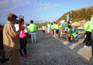 村営定期線を利用してトカラ列島の有人7島を走破するという,他に類がないマラソン大会です。十島村の本土復帰55周年を記念して,2006年に第1回が開催されました。口之島小・中学校の児童生徒も毎年参加し,力走を見せています。また,閉会式後の見送りの時は児童生徒全員でエイサーを踊って,ランナーの皆さんを見送ります。 |
