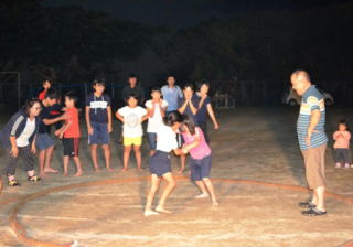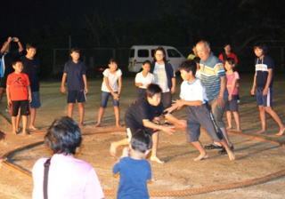 毎年9月に行われる,地域のお月見です。子どもたちや保護者,地域の方が参加して,満月を見ながら綱引きや相撲などを楽しみます。 |