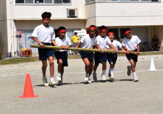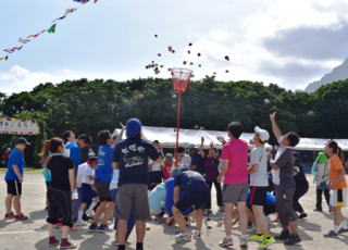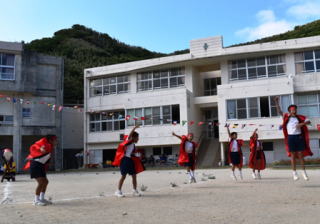 文化祭の翌日には,島内最大のイベント「口之島大運動会」があります。児童生徒を始め,島民が紅白に分かれて様々な種目が実施されます。島外からも,たもとゆり会の方々やダイバーの方々などが大勢参加され,大変盛り上がります。くちっこ園の子どもたちから高齢者まで,みんなが楽しむことのできる大イベントです。 「第69回口之島大運動会」(H29.10.8)の様子はこちら 「第68回口之島大運動会」(H28.10.9)の様子はこちら 「第67回口之島大運動会」(H27.10.11)の様子はこちら |