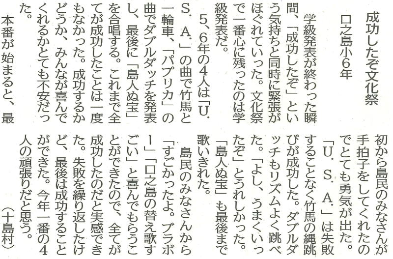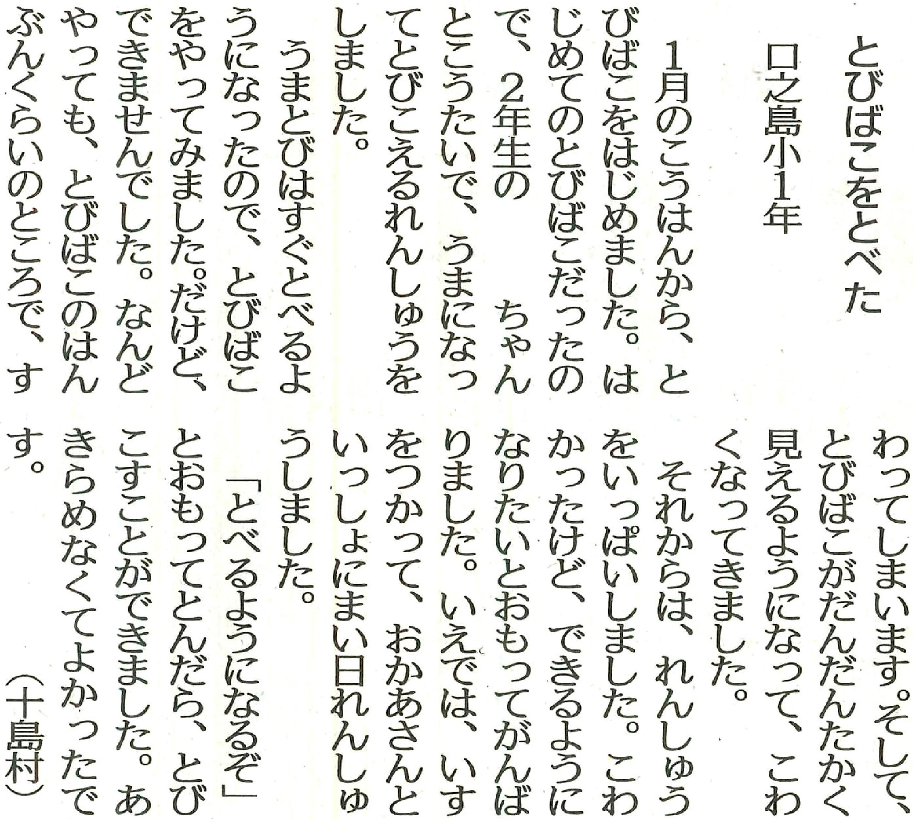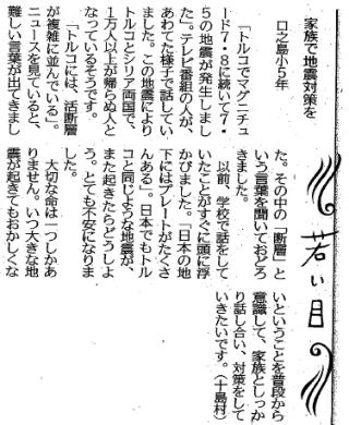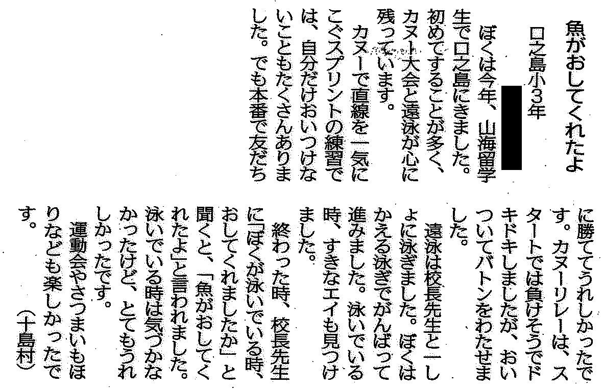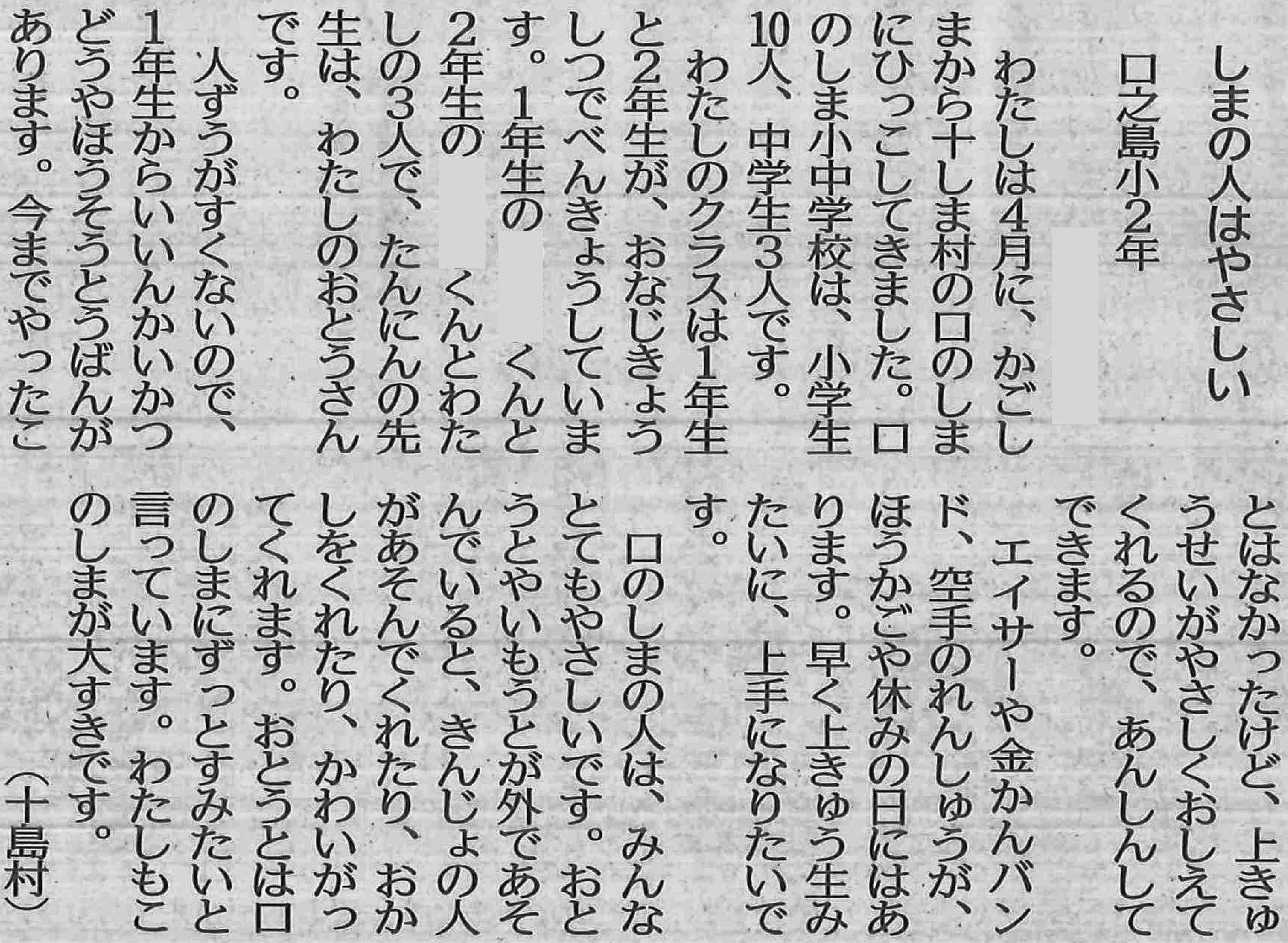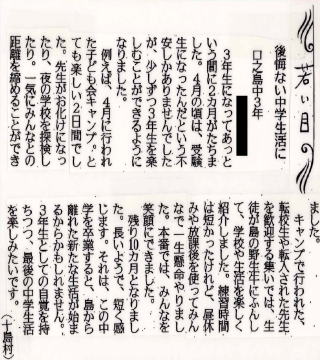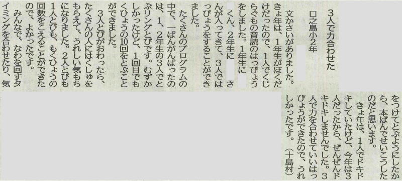 | 平成29年3月2日 南日本新聞掲載「若い目」 本校小学1年生Yさん投稿 |