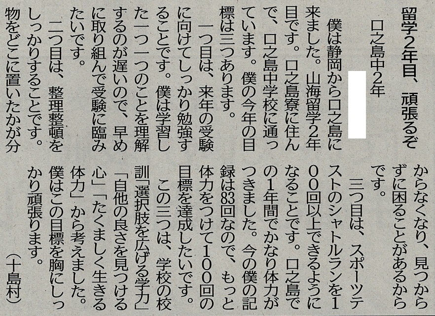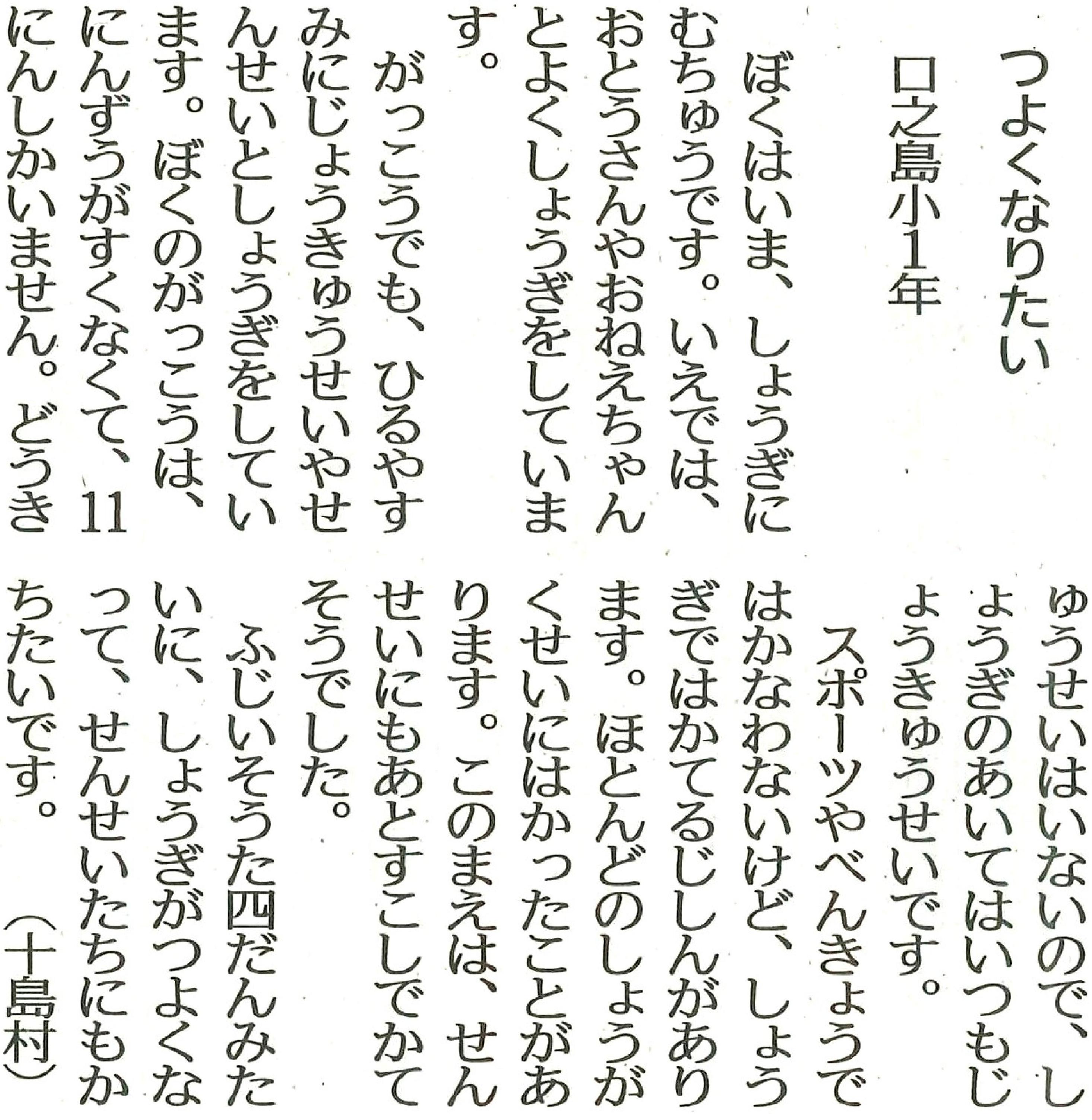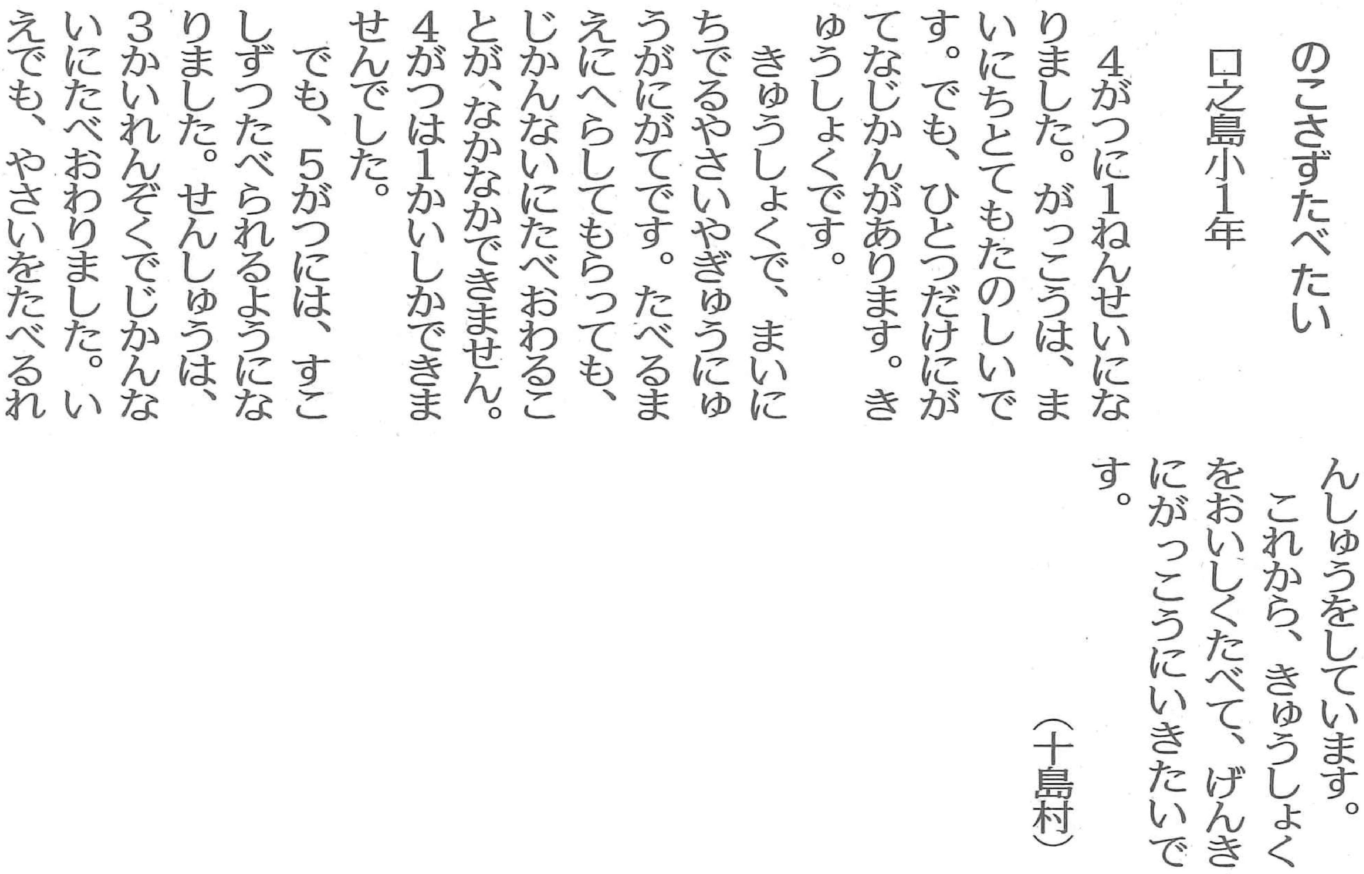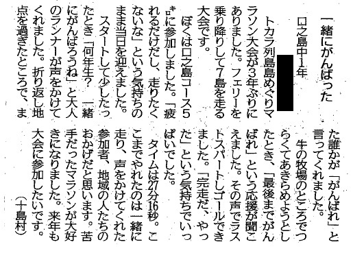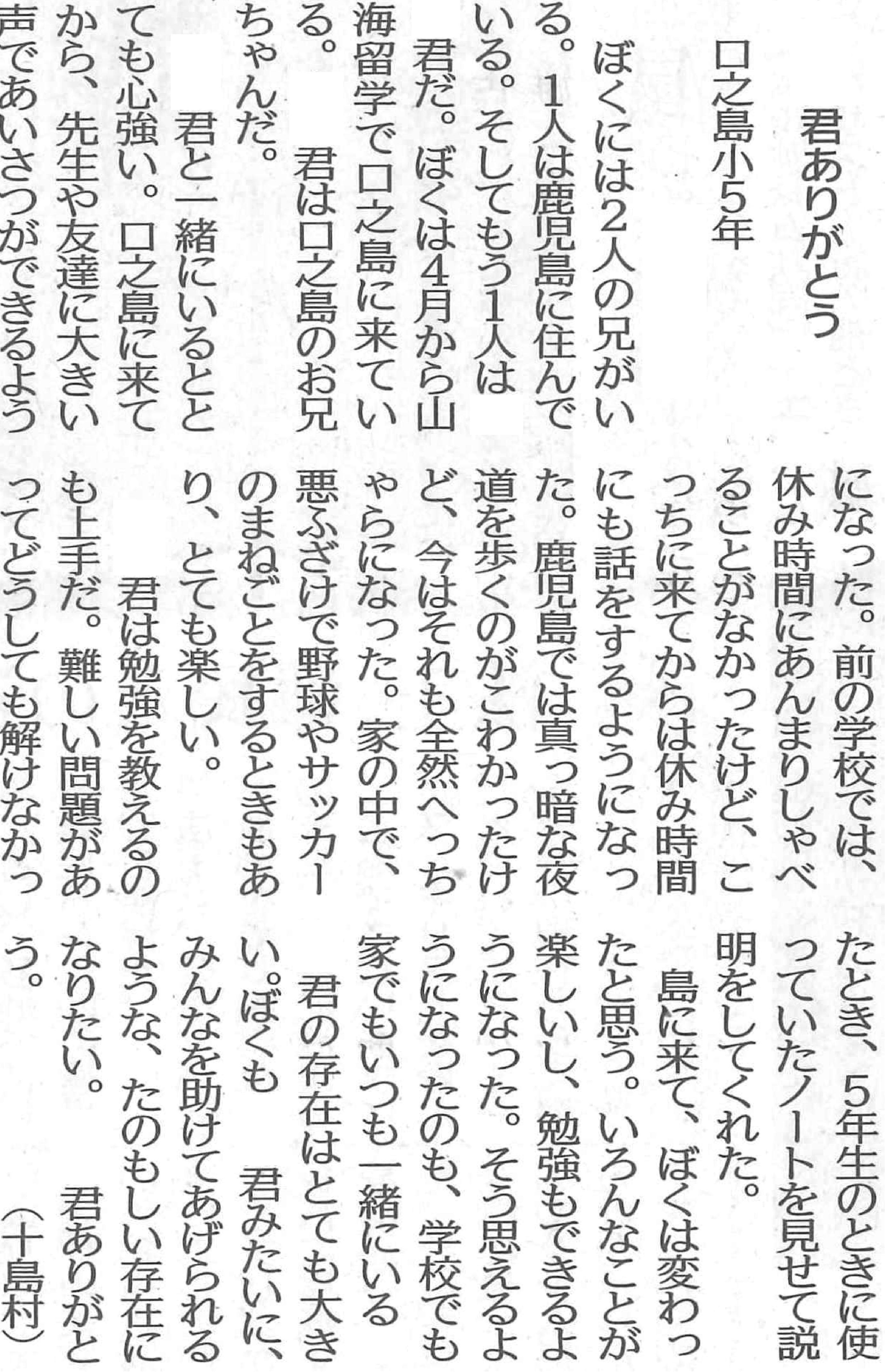 | 平成29年3月2日 南日本新聞掲載「若い目」 本校小学1年生Yさん投稿 |