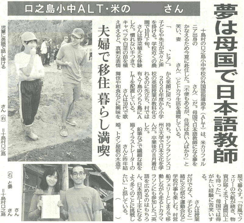| 令和元年10月8日 南日本新聞掲載記事 |