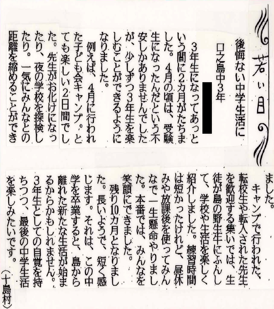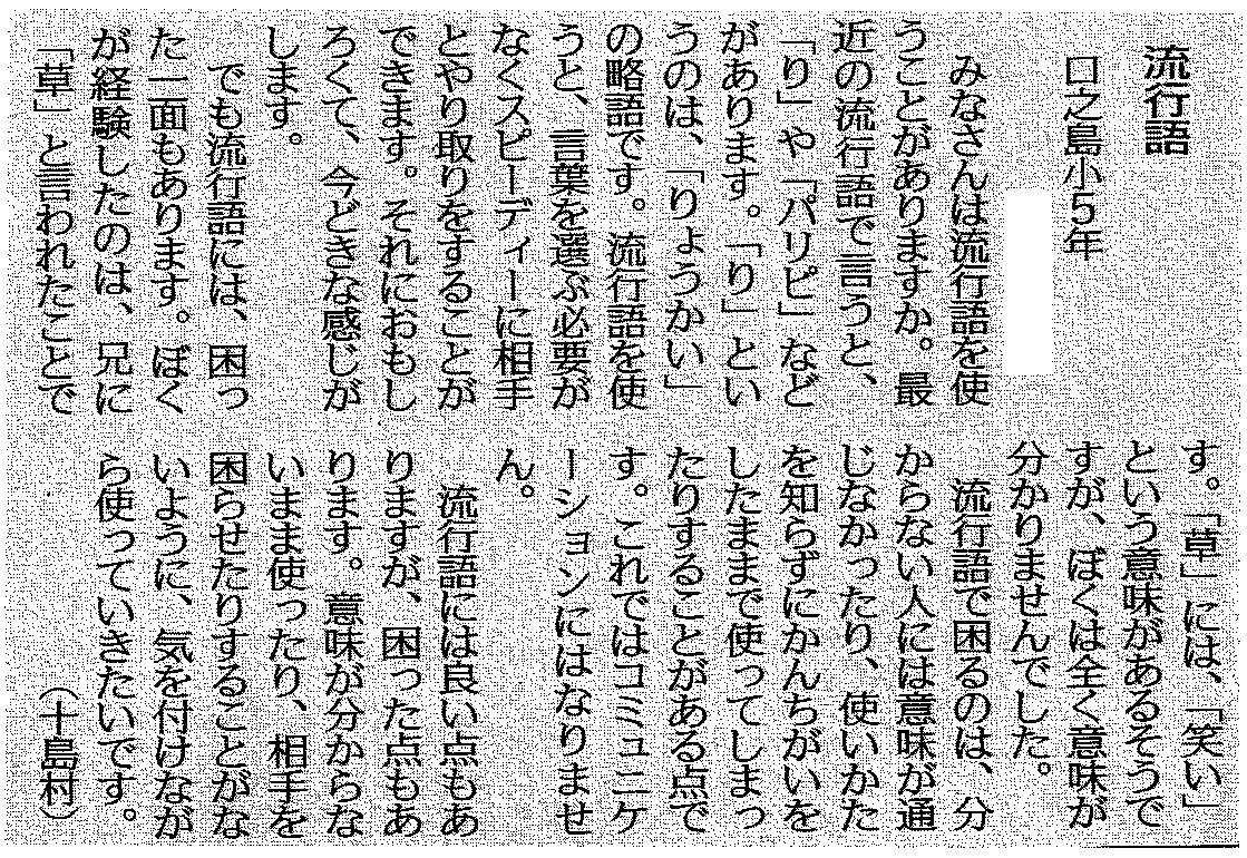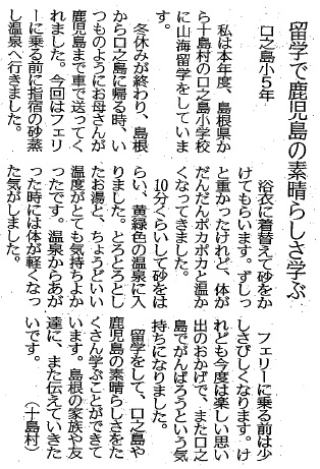 | 平成29年7月26日 南日本新聞掲載「若い目」 本校小学6年生Sさん投稿 |