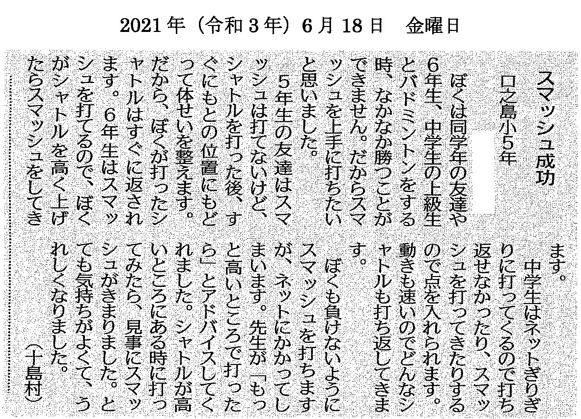 令和3年6月18日 南日本新聞掲載 |