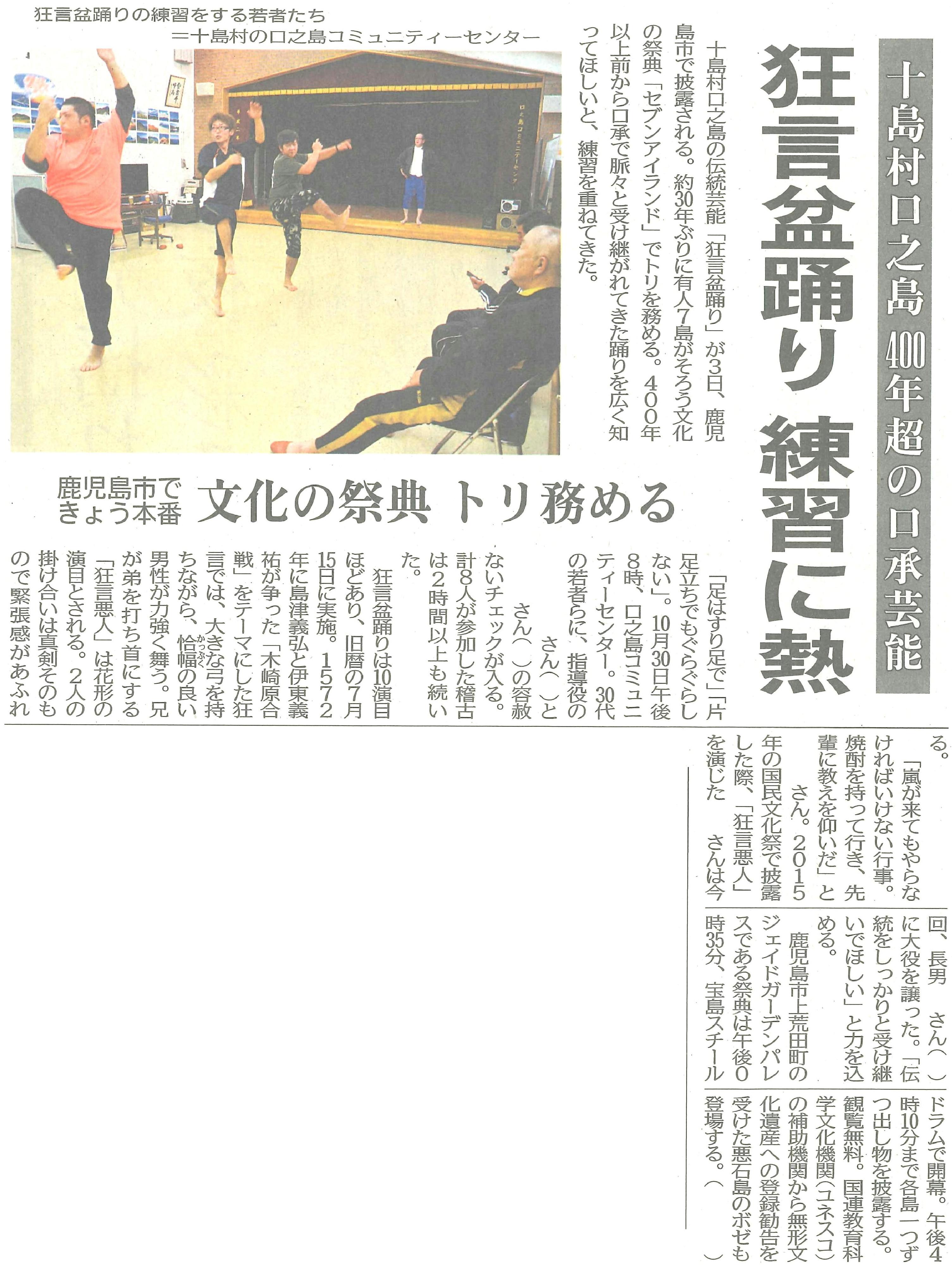 | 令和元年10月26日 南日本新聞掲載記事 |